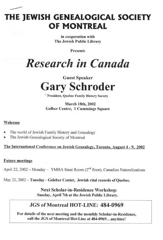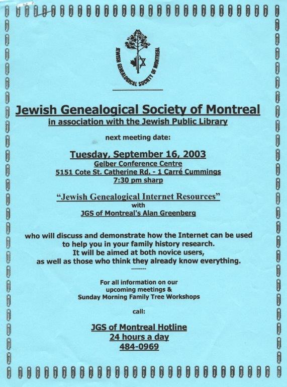 - Gary Perlman (JGS of Montreal's Webmaster)