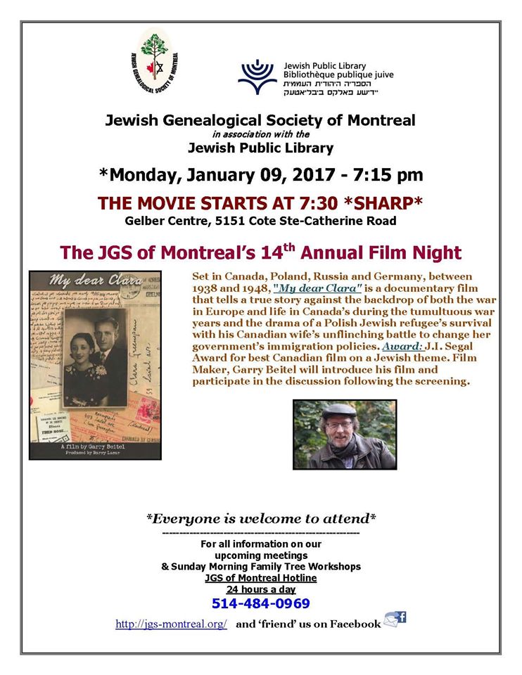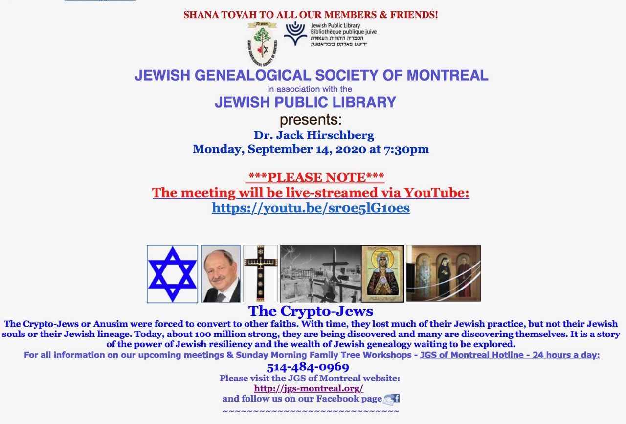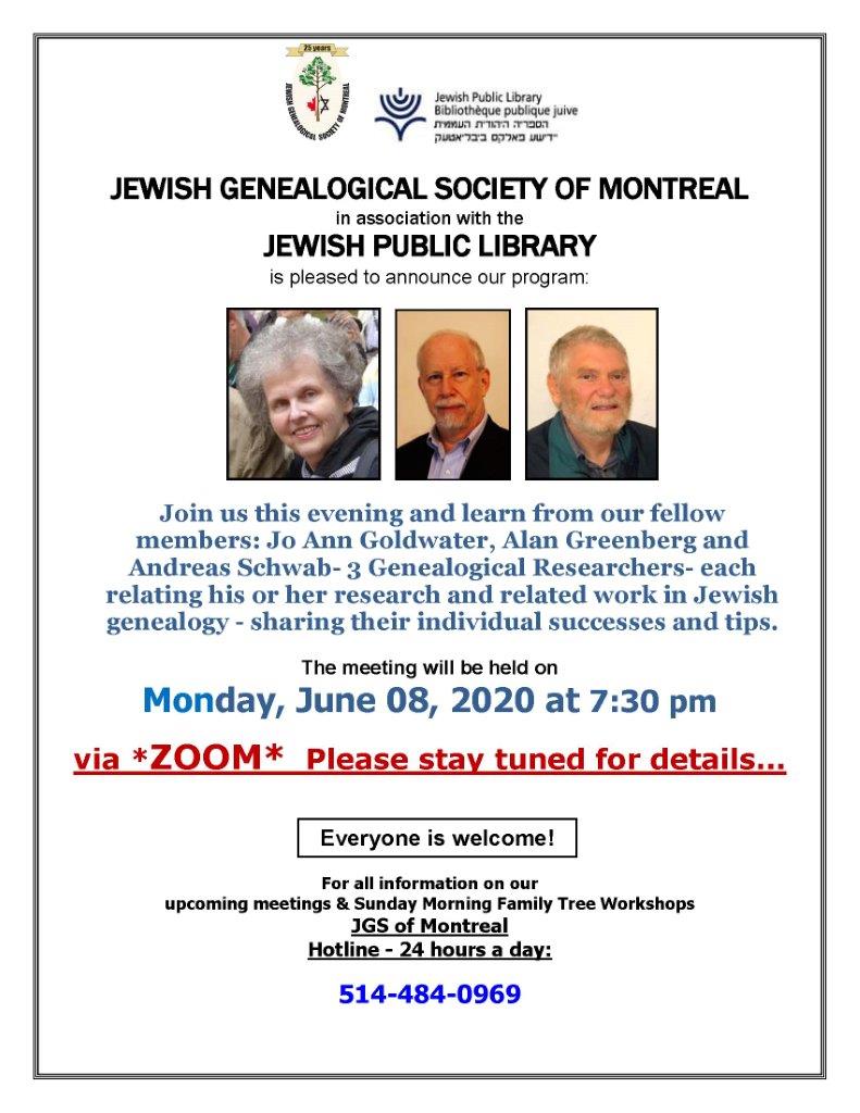 A joint presentation of the Jewish Genealogical Societies of Philadelphia and Montreal. A special members-only event, via Zoom (details to follow via email to members). |